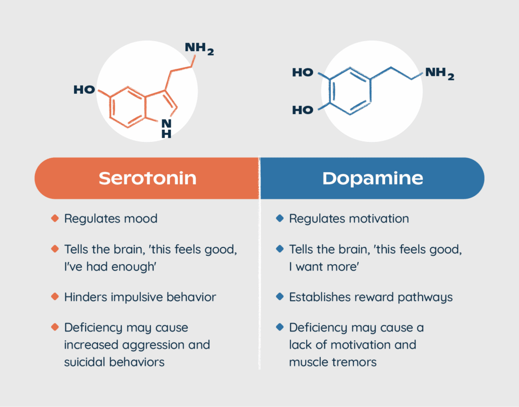 - Serotonin – Influences learning, memory, and happiness. Low serotonin has been associated with many mental health conditions, including anxiety, depression and sleep problems.